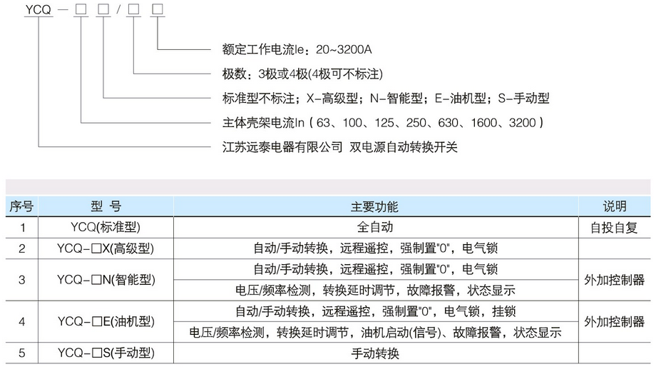我公司生產(chǎn)的YCQ系列雙電源自動轉(zhuǎn)換開關(guān)屬于第四代產(chǎn)品,符合的標準為IEC60947-6-1、GB14048.11《自動轉(zhuǎn)換開關(guān)電器》和IEC60947-I/GB/T14048.1《低壓開關(guān)設備和控制設備總則》
