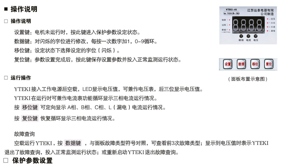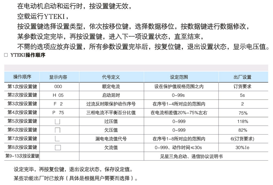 YTEKI控制與保護(hù)開關(guān)-參數(shù)設(shè)置